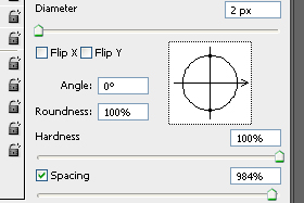 Kliknemo Window – Brushes ter v novo odprtem oknu določimo vrednosti, kot na sliki.