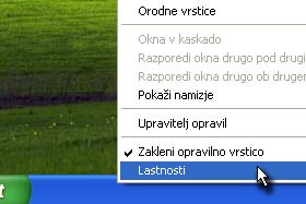 Kliknite z desnim miškinim gumbom nekam na opravilno vrstico in izberite Lastnosti. |