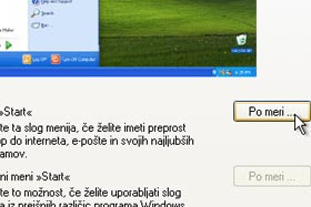 Sedaj pa spodaj kliknite na gumb Po meri... (v mojem primeru je na desni strani označen Meni Start).