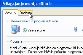 V novem oknu Prilagajanja Menija Start, kliknite na zavihek Dodatno.