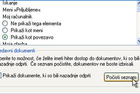 Spodaj v polju Nedavni dokumenti, kliknite na gumb Počisti seznam.