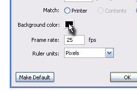 Jaz sem določil črno barvo (glej sliko). Frame rate določite 25 fps in kliknite na gumb OK. |