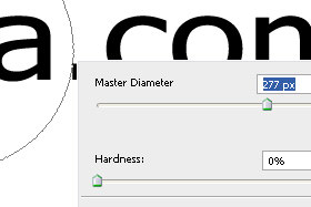 Kliknite z desnim miškinim gumbom na dokument in izberite Master Dimater v velikosti dveh ali treh črka napisa ter Hardness na 0%.