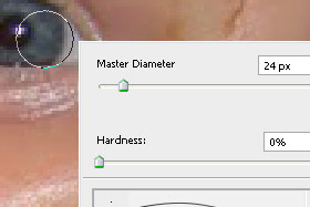 Kliknite z desnim miškinim gumbom na dokument in izberite Master Dimater v velikosti oči in Hardness na 0%.