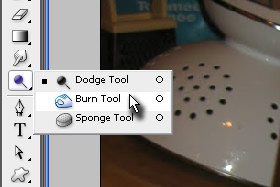 Držite z miško na orodje Dodge Tool (bližnjica je tipka O) toliko časa dokler se ne prikažejo ostala orodja. |