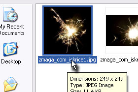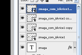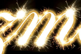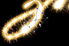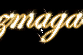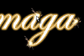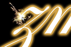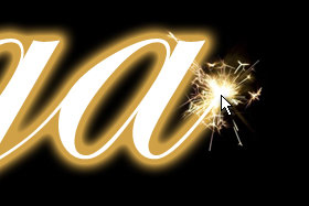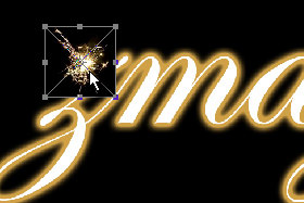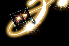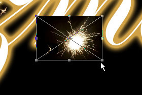![]() Sedaj pa tretjo sliko z iskricama pomanjšajte in postavite na napis tako, da se bo prilagodila linijam pisave (glej sliko). |