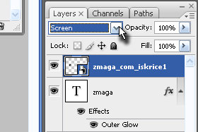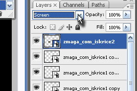 ![]() Določite layerju z iskrico senčenje na Screen (glej sliko). |