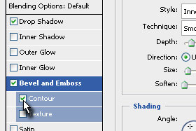 ![]() Označite še Bevel and Emboss in Contour ter pustite privzete vrednosti. |