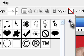 ![]() Zgoraj v orodni vrstici kliknite na izbirnik oblik (glej sliko)... |