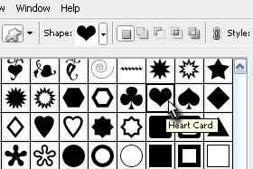 ![]() Zgoraj v orodni vrstici ponovno kliknite na izbirnik oblik (glej sliko) ter izberite obliko srčka. |