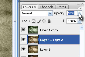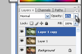 Določite layerju Opacity na okoli 45% (glej sliko).