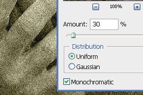 Kliknite zgoraj na Filter, Noise in izberite Add Noise...