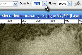 Zgoraj v orodni vrstici določite Opacity na okoli 15% (glej sliko).