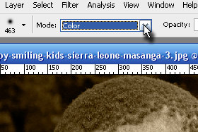 Zgoraj v orodni vrstici Mode določite na Color.