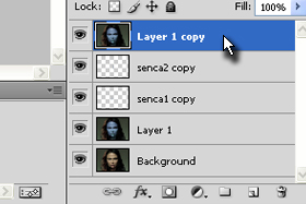 ![]() Sedaj podvojite layer (Ctrl+J), ki ste ga že podvojili pri prvem koraku, ter ga prestavite na vrh nad vse ostale layerje. |