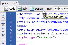 Preklopite nazaj v oblikovni način tako, da kliknte na gumb Design.