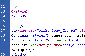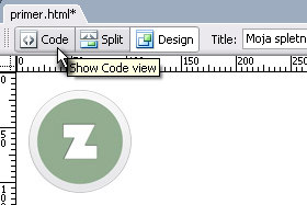 Jaz sem Adobe Dreamweaver. Postavite se na položaj, kjer boste vnesli kodo. |