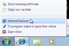 Kliknite z desnim miškinim gumbom na ikono Internet Explorer (glej sliko) in izberite Internet Explorer.