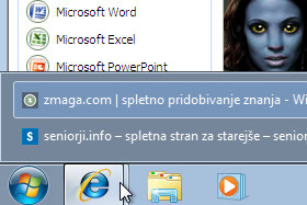 Če se z miško postavite, se vam prikažejo vsa odprta okna. |