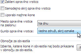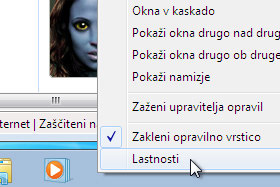 Kliknite z desnim miškinim gumbom nekje na prazno polje v opravilni vrstici in izberite Lastnosti.