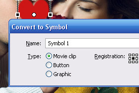 Pritisnite tipko F8 in v novem oknu Type določite Movie clip ter potrdite s klikom na gumb OK. |