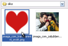 Kliknite tukaj, da si prenesete fotografijo zalubljencev, ki sem jo uporabil v tej lekciji. Seveda lahko uporabite neko svojo fotografijo. Potem pa kliknite zgoraj na File, Import in izberite Import to Stage... V oknu z raziskovalcem označite preneseno datoteko in kliknite na gumb Open. |