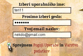Sedaj izpolnite podatke in označite kljukico, da se strinjate s pravili.