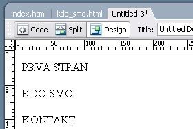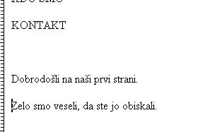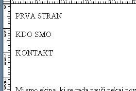 Vpišite spet PRVA STRAN, KDO SMO in KONTAKT. Spodaj pa vpišite "To je kontaktna stran." Shranite stran kot kontakt.htm (File, Save As...) |