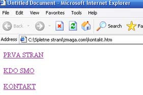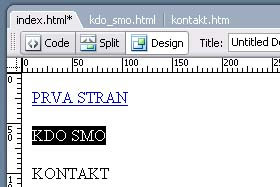 Kliknite na zavihka kdo.smo.html in kontakt.htm in ustvarite povezave še na teh straneh. |