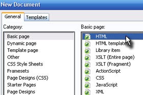 Odpre se vam novo okno. Na levi strani izberite Basic page in na desni HTML.