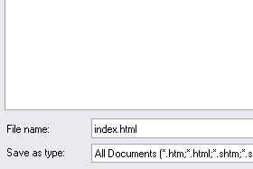 V novem oknu pod File name vpišite index.html in kliknite na gumb Save.