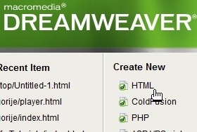 Odprite program Adobe Dreamweaver in izberite HTML (glej sliko).