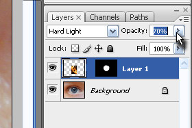 Pritisnite tipki CTRL + T in prilagodite velikost ognja na velikost očesa in nato potrdite spremembe s tipko Enter. |