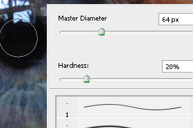 Kliknite z desnim miškinim gumbom na dokument in določite Hardness 20% in Master Diameter (velikost čopiča) v velikosti zrkla.