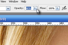 Zgoraj v orodni vrstici določite Opacity na 40% (glej sliko).