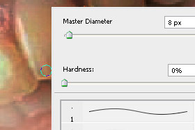 Kliknite z desnim miškinim gumbom na dokument in določite Hardness na 0% in Master Diameter na okoli 8px (velikost čopiča).
