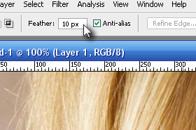 Zgoraj v orodni vrstici določite Feather na okoli 10 px (glej sliko).