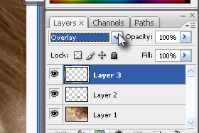 Določite novemu layerju senčenje na Overlay (glej sliko).