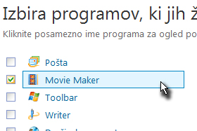 Sedaj morate izbrati kaj boste namestili. Označite samo Movie maker, če ne želite imeti nič drugega.