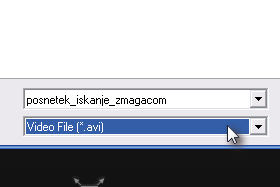 Sedaj shranite pod poljubnim imenom, in shranite dokument kot .avi datoteko.