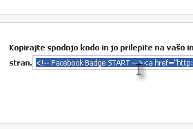 In vstavite kodo, ki ste jo dobili na Facebook strani.