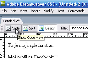 Odprite program Adobe Dreamweaver in ustvarite nov HTML dokument.