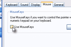 Označite Vklop simulacijske miške ali Use MouseKeys.