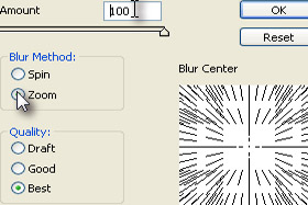 Amount nastavite na 100. Blur Method naj bo nastavljen na Zoom, Quality pa naj bo nastavljeno na Best.