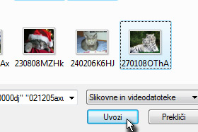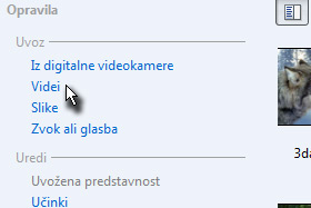 Ter stisnemo Uvozi. Če vam videja ne gre vstaviti. Potem si oglejte to lekcijo. Samo da vi morate pretvoriti v datoteko wmv saj je najbolj primerna za Windows Movie Maker |