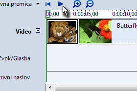 Sedaj pa samo na časovno premico povlečemo želene videe in slike v zaporedju ter kliknemo Play in že lahko gledamo naš 1 film.