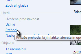 Sedaj bomo dodali nekaj prehodov med slikami in videi.
