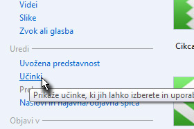 Sedaj bomo dodali še nekaj učinkov slikam. Izberemo Učinki(glej sliko). |