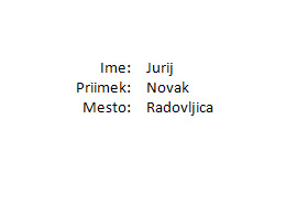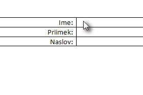 Sedaj pa v levi del tabele vpišite ime, priimek in naslov (glej sliko).