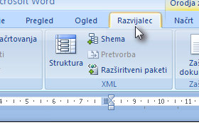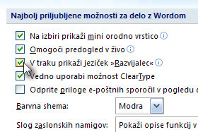 V novem oknu označite V traku prikaži jeziček Razvijalec.